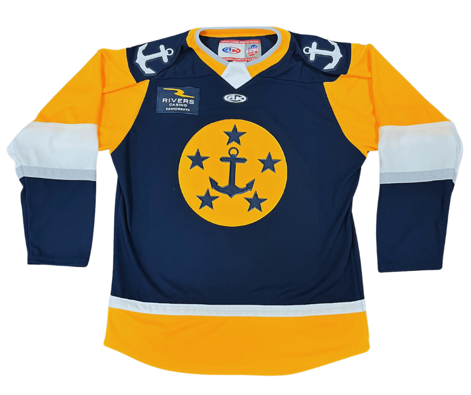 Represent for your Norfolk Admirals in our slick new threads! The New 24-25 Navy Replica Jersey features elements of our historic Circle, Anchor, and Stars in a new and improved look!